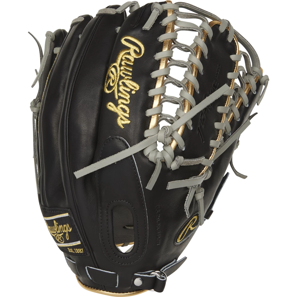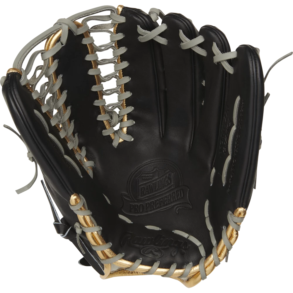 Crafted from flawless kip leather, the Rawlings 2021 Pro Preferred 12.75-inch outfield glove offers unparalleled quality and performance. It’s built using the same pattern used by perennial MVP candidate Mike Trout. This unique glove features a classic black design along with eye-catching gold binding, and grey lacing.